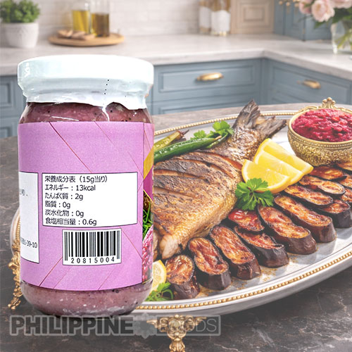 「Barrio Fiesta Bagoong Regular 500 g(バリオ・フィエスタ バゴォン レギュラー)」は、発酵エビを玉ねぎ・にんにくとともに炒めて仕上げた、豊かな旨味と香ばしさが特長のフィリピン伝統調味料です。レディ・トゥ・イート仕様で常温保存も可能な使いやすさに加え、500 gの大容量で料理の幅もぐっと広がります。カレ・カレやビナゴオンガン、ピナクベットなどの定番料理に深みを添えたり、青マンゴーと合わせたディップや炒飯・パスタのアレンジ素材としても活躍。家庭に本格フィリピンの味を届ける、万能で頼れる調味料です。